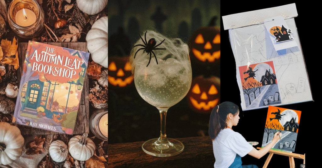 I’ve actually put together a few Halloween and fall paint kits that include everything you need to have a cozy night in. Handmade in my shop, they’re perfect for when you want to create something seasonal without the hassle of gathering supplies. Put on your favorite playlist, make yourself a cute drink, and get creative.